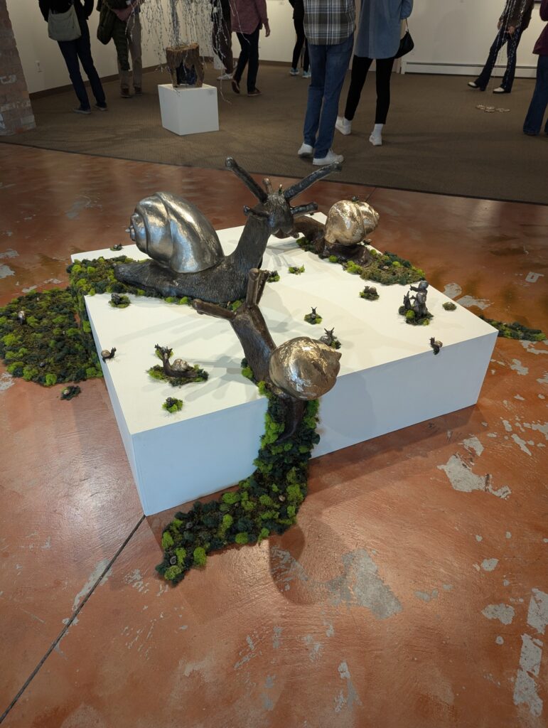 I stayed after the conference to check out more of the First Friday Art Walk and the galleries downtown. I learned that the “First Friday Art Walk” wasn’t as much of a concerted effort as our Montrose Art Crawl. Each gallery has its First Friday event, but they are all pretty well separated. I went in and spoke with many students at the Colorado Mesa gallery, inviting them to the Art Crawl. I also spoke with the gallery director more about bringing in more of their artists for our events. I took a look at the new downtown gallery that had opened in the last month. There were many beautiful pieces on display- but the business model itself was nothing out of the ordinary; in fact, the gallery was a lot like the Montrose Center for Art. The artists are vetted for wall space, but rent it just the same. The Uncanny Valley was celebrating its 10th year, so I stopped in to check them out. I also had some great interactions with the owner of the Confluence Studios. Her studio is similar to what I would like to do with a space for art sales and a classroom area. In the long run, while I would love the more intense artist coworking space, a shop with a classroom is the next best thing.