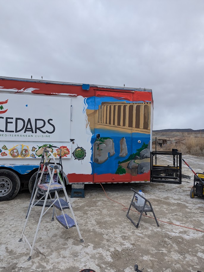 I began the year by painting Cedar’s Mediterranean Cuisine’s food truck with colorful scenes inspired by Lebanon. In the middle of summer, I brightened a family’s backyard fence with a whimsical, childlike garden mural. And most recently, I completed my part of a large-scale community mural on the alley side of the Mosaic building in downtown Montrose, CO.